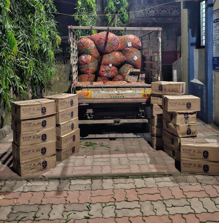 ઇનામદાર, ૯.વ.૨૨ રહે. જામા મસ્જીદ, તાકી રોઠ, નંદુરબાર તા જ નંદુરબાર (મપરાષ્ટ્ર નાએ વગર પાસ પરમિટૈ પૌતાના કબ્જાના ટાટા ACE છોટા હાથી ટેમ્પો નં.-GJ-02-2-6863, આશરે કિ, શ ૧,૦૦,૦૦૦/- માં મરચાની ગુણોની આડમાં ભારતીય બનાવટની ઇમ્પેરીયલ બ્લ્યૂ વ્હિસ્કીની કંપની સીલબંધ ઇંગ્લીશ દારૂની નાની બોટલો કુલ-૧૨૦૦, કુલ કિંમત રૂ! ૧,૨૦,૦૦૦/-નો પ્રોહી મુદ્દામાલ ની હેરાફેરી કરતા મોબાઇલ નંગ-૦૨, કિં.રૂ! ૫,૦૦૦/-, રોકડા રૂ! ૩,૮૫૦/- તથા મરચા ભરેલ પ્લાસ્ટીકની ગુણો કુલ-૧૫, જેમા મરચા આશરે ૪૫૦ કિ.ગ્રા., જેની આશરે કિ, રૂ! ૯,૦૦૦/- મળી કુલ્લે રૂ! ૨,૩૭,૮૫૦/-