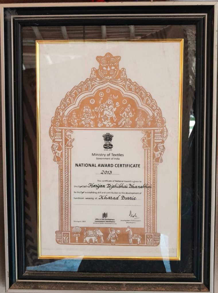 આ કલાને સાચવીને બેઠેલા પરિવારે આજે અનેક લોકોને આ કલા શીખવાડીને તેને જીવતદાન આપ્યું છે. મૂળ કચ્છની સરહદી વિસ્તારના કુરન ગામના અને સ્થળાંતર કરીને કુકમા ખાતે રહેતા આ પરિવારના મોભી તેજશીભાઇ ધના મારવાડા જણાવે છે કે, મને યાદ છે ત્યાં સુધી અમારી ૧૦ પેઢીથી આ કામગીરી અમે કરી રહ્યા છીએ. આ કલાના સંરક્ષણ માટે નવી પેઢીને આ કલાની તાલીમ આપતા હાલ કચ્છમાં ખારી, ખાવડા, કુરન વગેરે સ્થળે પણ ખરડકામ થઇ રહ્યું છે. કલાક્ષેત્રનો સૌથી પ્રતિષ્ઠીત ગણાતો વર્ષ ૨૦૧૯નો સંત કબીર એવોર્ડ,વર્ષ ૨૦૧૩માં ટેક્સટાઇલ ક્ષેત્રનો નેશનલ એવોર્ડ, વર્ષ ૨૦૨૦માં સ્ટેટ એવોર્ડ, વર્ષ ૨૦૨૧માં ગુજરાત ટુરીઝમનો એવોર્ડ તથા વર્ષ ૨૦૧૯ નેશનલ કક્ષાનો કલામણી એવોર્ડ, એક એનજીઓ પ્રાયોજીત વર્ષ ૨૦૧૯નો આંતરરાષ્ટ્રીય એવોર્ડ સહિત નેશનલ અને સ્ટેટ એવોર્ડ મેળવી ચુકેલા તેજશીભાઇ વધુમાં ઉમેરે છે કે, ખરડ કલાએ પારંપરિક કલા છે. જેને હાથ વણાટથી તૈયાર કરવામાં આવે છે. જેને રાજસ્થાનમાં જેરોઇ, સિંધીભાષામાં ખરાદ કહેવાય છે જેનો મતલબ મજબુત એવો થાય છે. આ ખરડ કામમાં ઘેટા, બકરા તેમજ ઊંટના ઊનનો ઉપયોગ કરવામાં આવે છે. જેમાંથી કાર્પેટ, ગાલીચા, વોલ હેંગીગ, આસન વગેરે જેવા ઘર સુશોભન તથા દૈનિક જીવનમાં ઉપયોગ કરી શકાય તેવા નમુના બનાવાય છે. તેઓ જણાવે છે કે, આમ તો કલાના મૂળ ખૂબ જ ઊંડા છે. જયારથી કલાનો વિકાસ થયો ત્યારથી આ કળા અસ્તિત્વમાં છે.