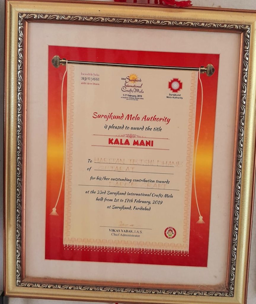 તેઓ ઉમેરે છે કે, આ પ્રદર્શની મેળા થકી વૈશ્વિક ઓળખ પ્રાપ્ત થતાં અનેક ઓર્ડર મળવા લાગ્યા જેથી મજૂરી કામ છોડીને તેઓ સંપૂર્ણ પણે ખરડ કલાના નમૂના બનાવવામાં લાગી ગયા. આ કલાને વ્યવસાય તરીકે અપનાવી લીધો. વર્ષ ૨૦૧૧માં તત્કાલીન મુખ્યમંત્રીશ્રી અને વર્તમાન પ્રધાનમંત્રીશ્રી નરેન્દ્રભાઇ મોદીના હસ્તે પુરસ્કાર મળ્યો હતો. જેથી ગુજરાત કક્ષાએ પણ આ કળાને તકો પ્રાપ્ત થઇ. વર્ષ ૨૦૧૭માં આંતરરાષ્ટ્રીય કક્ષાના ખરડ મેળામાં ભાગ લેવાની તક સાથે દિલ્લી નજીક યોજાતા આંતરરાષ્ટ્રીય સુરજકુંડ મેળામાં ભાગ લેવાથી ખરડકામને વૈશ્વિક માર્કેટીંગ પ્લેટફોર્મ પ્રાપ્ત થયું છે.