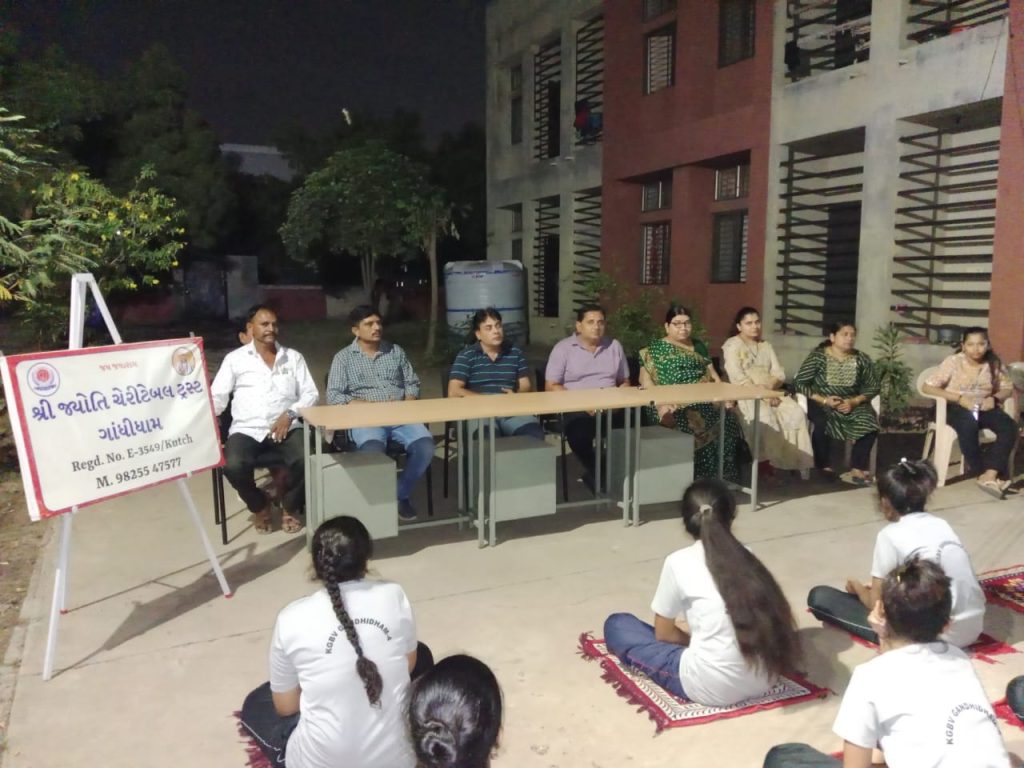 શ્રી જ્યોતિ ચેરીટેબલ ટ્રસ્ટ ગાંધીધામ દ્વારા તા.24-10-2023 ને મંગળવારે કસતુર બા ગાંધી વિધયાલય ઓસ્લો, ગાંધીધામ માં દીકરીઓ ને ભોજન પ્રસાદ કરાવવાનો લ્હાવો મળેલ રામ ભરોશે પરિવાર તરફ થી . જેમા જહેમત ઉઠાવેલ. પ્રમુખ શ્રી પ્રવિણ ભાઈ. એ.હાલાણી (ટ્રસ્ટી). અને વડીલ શ્રી પી.ટી.ઠક્કર ના માર્ગ દર્શન હેડળ ધર્મેશ ભાઈ હાલાણી. ગૌરાંગ ભાઈ ઠક્કર. દિલીપભાઈ રાઠોડ. હીરાલાલ ઠક્કર. હનુ ભાઈ સાથે .મંજુલાબેન અખાણી.જલ્પાબેન હાલાણી.કલ્પનાબેન હાલાણી