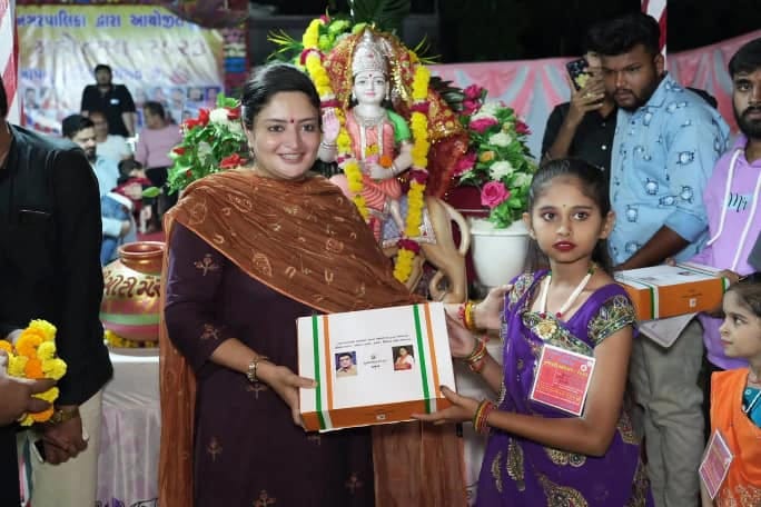 પહોચીને લ્હાણી પહોંચાડે છે સાસદશ્રી પૂનમબેન પણ અનેક નવરાત્રીઓમા જાતે બાળાઓને લ્હાણી વિતરણ કરે છે આ તકે બાળાઓના ચહેરાઓનુ સ્મિત અને ખુશીને તેઓ માતાજીની કૃપા ગણી આ સેવાની તક માટે સૌ આયોજકો અને વાલીઓનો આભાર માનતા હોય છે