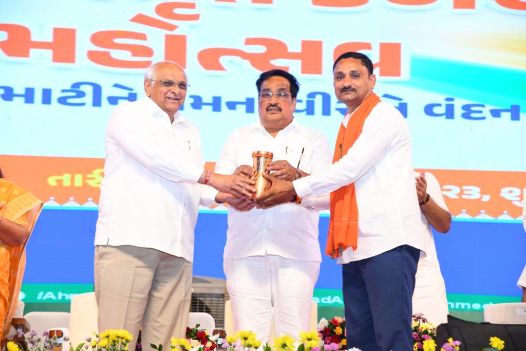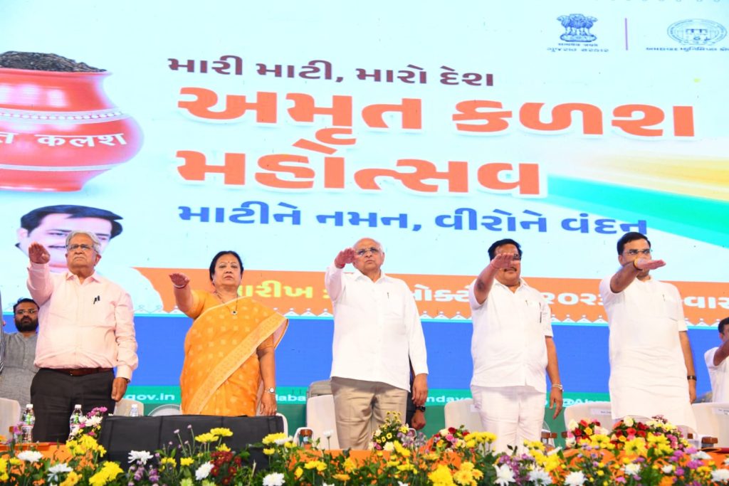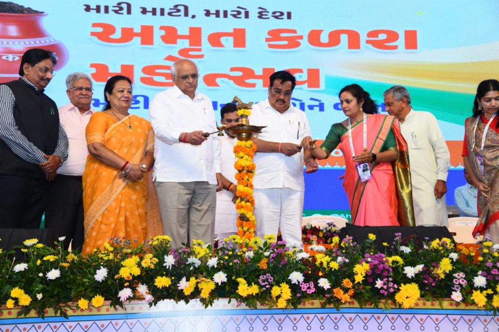 મુખ્યમંત્રી શ્રી ભૂપેન્દ્ર પટેલે આ અમૃત કળશ મહોત્સવ પ્રસંગે જણાવ્યું કે, દેશના યશસ્વી વડાપ્રધાન શ્રી નરેન્દ્રભાઈ મોદીના નેતૃત્વમાં દેશ ઝડપથી વિકાસ પામ્યો છે. વડાપ્રધાનશ્રીના નેતૃત્વમાં ગયા વર્ષે આઝાદીના 75 વર્ષની ઉજવણીના ભાગરૂપે આપણે અમૃત મહોત્સવની ઉજવણી કરીને અમૃતકાળમાં પ્રવેશ્યા છીએ.