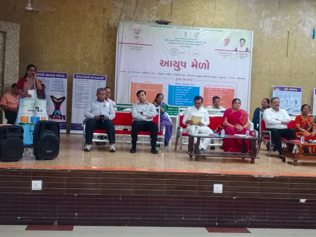 અમદાવાદ જિલ્લા ખાતે ‘આયુર્વેદ ફોર વન હેલ્થ’ અને ‘હર દિન હર કિસી કે લિયે’ આયુર્વેદ અભિયાન અંતર્ગત ગુજરાત સરકારના આરોગ્ય અને પરિવાર કલ્યાણ વિભાગ, નિયામક શ્રી આયુષના માર્ગદર્શન હેઠળ જિલ્લા આયુષ તંત્ર, અમદાવાદ દ્વારા 28 ઓક્ટોબર, રાષ્ટ્રીય આયુર્વેદ દિવસ 2023ના સંદર્ભે ઈન્દુલાલ યાજ્ઞિક હોલ બાપુનગર ખાતે આયુષ મેળાનું આયોજન કરવામાં આવ્યું હતું.