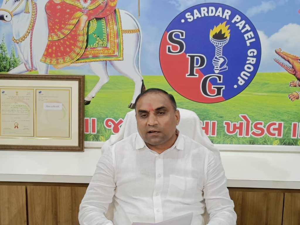 આજરોજ મહેસાણા ખાતે સરદાર પટેલ સેવાદળ spg ના રાષ્ટ્રીય અધ્યક્ષ લાલજીભાઈ પટેલ ના અધ્યક્ષ સ્થાને લગ્ન નોંધણી ના કાયદામા સુધારો થાય તે માટે પ્રેસ કોન્ફરન્સ યોજવામાં આવી આ પ્રેસ કોન્ફરન્સમાં ચાર માગણીઓ પૂરી થાય તે માટે આગામી ટૂંક સમયમાં સર્વ સમાજના આગેવાનોની ટીમ સાથે ગુજરાત રાજ્યના મુખ્યમંત્રી અને કાયદા મંત્રી ને રૂબરૂ મળી કાયદામાં સુધારો થાય તે માટે રજૂઆત કરવામાં આવશે તે માટેની પ્રેસ કોન્ફરન્સ યોજવામાં આવી હતી આ પ્રેસ કોન્ફરન્સમાં ખોટા લગ્નની નોંધણી ના થાય તે માટે ઝુંબેશ માટેના કાયૅકમ ની જાહેરાત કરવામાં આવશે સવૅ સમાજની કમિટી ની જાહેરાત કરવામાં આવી.