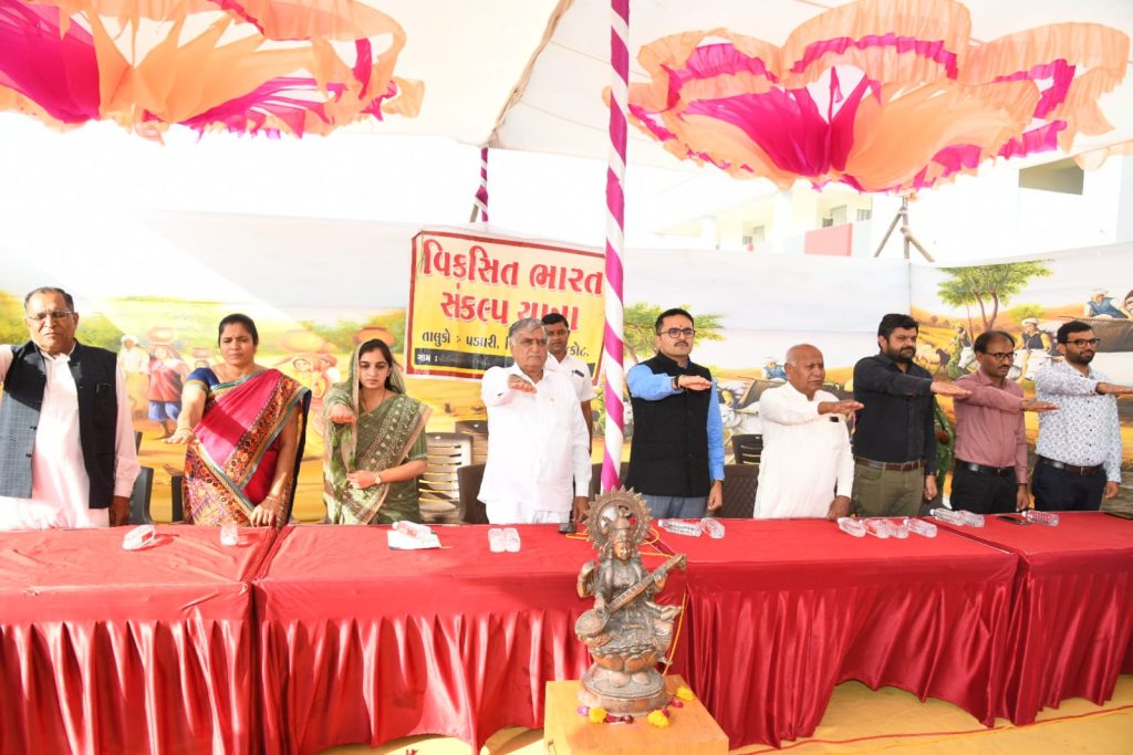 ધારાસભ્યશ્રી દુર્લભજીભાઈ દેથરીયાએ આ પ્રસંગે કહ્યું હતું કે, દેશના તમામ વિસ્તારોની ખાસિયતોને ધ્યાનમાં રાખીને વડાપ્રધાનશ્રી નરેન્દ્રભાઈ મોદીએ વિવિધ યોજનાઓ અમલી બનાવી છે. આ યાત્રાની સાથે વર્ષ ૨૦૪૭માં આઝાદીના ૧૦૦ પૂર્ણ થાય ત્યાં સુધીમાં સમગ્ર દેશને “વિકસિત ભારત” તરીકે પ્રસ્થાપિત કરવાની નેમ છે. વડાપ્રધાનશ્રી નરેન્દ્રભાઈ મોદી અને મુખ્યમંત્રીશ્રી ભૂપેન્દ્રભાઈ પટેલના નેતૃત્વમાં વહીવટીતંત્ર દ્વારા સરકારની તમામ યોજનાઓના લાભાર્થીઓને મળવાપાત્ર લાભો તેમના ઘર આંગણા સુધી પહોંચાડવામાં આવી રહ્યા છે.