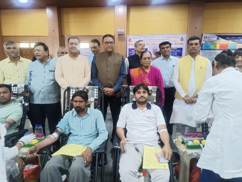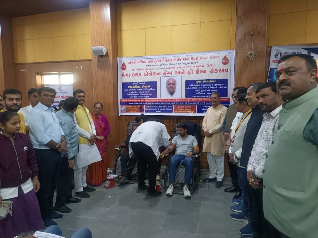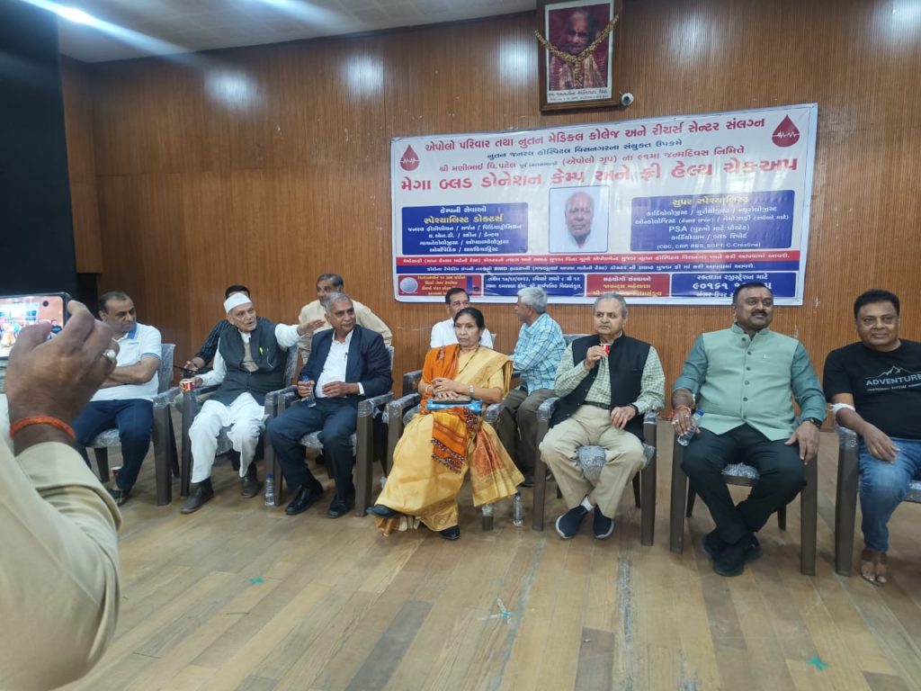 મહેસાણા ખાતે એપોલો પરિવાર તથા નૂતન મેડિકલ કોલેજ અને રિસર્ચ સેન્ટર સહ સંલગ્ન નૂતન જનરલ હોસ્પિટલ વિસનગર ના સંયુક્ત ઉપક્રમે મેધા બ્લડ ડોનેશન કેમ્પ ફી હેલ્થ કેર ચેકઅપ કેમ્પ કમળાબા હોલ શ્રી સાર્વજનિક વિધાસંકુલ મહેસાણા ખાતે યોજાયો એપોલો પરિવાર ગૃપ ના પૂર્વ ધારાસભ્ય મણીભાઈ વિ પટેલ ના 91 માં જન્મ દિવસ નિમિત્તે મેધા બ્લડ ડોનેશન કેમ્પ યોજાયો આ કેમ્પ માં સ્પેશિયાલિસ્ટ ડોક્ટરો ની ટીમે હાજરી આપી હતી જેમાં જનરલ ફિજિશિયન. સર્જન. પીડિયાટીસીયન. સ્કીન ડોક્ટર ડેન્ટલ. ગાયનોકોલોજીસ્ટ ઓર્થોપેડિક .કાર્ડિયોલોજીસ્ટ યુરોલોજીસ્ટ. ન્યુરોલોજીસ્ટ જેવા અનેક સ્પેશિયાલિસ્ટ ડોક્ટરોએ આ સેવા ફ્રી ચેક અપ કેમ્પ માં હાજરી આપી હતી