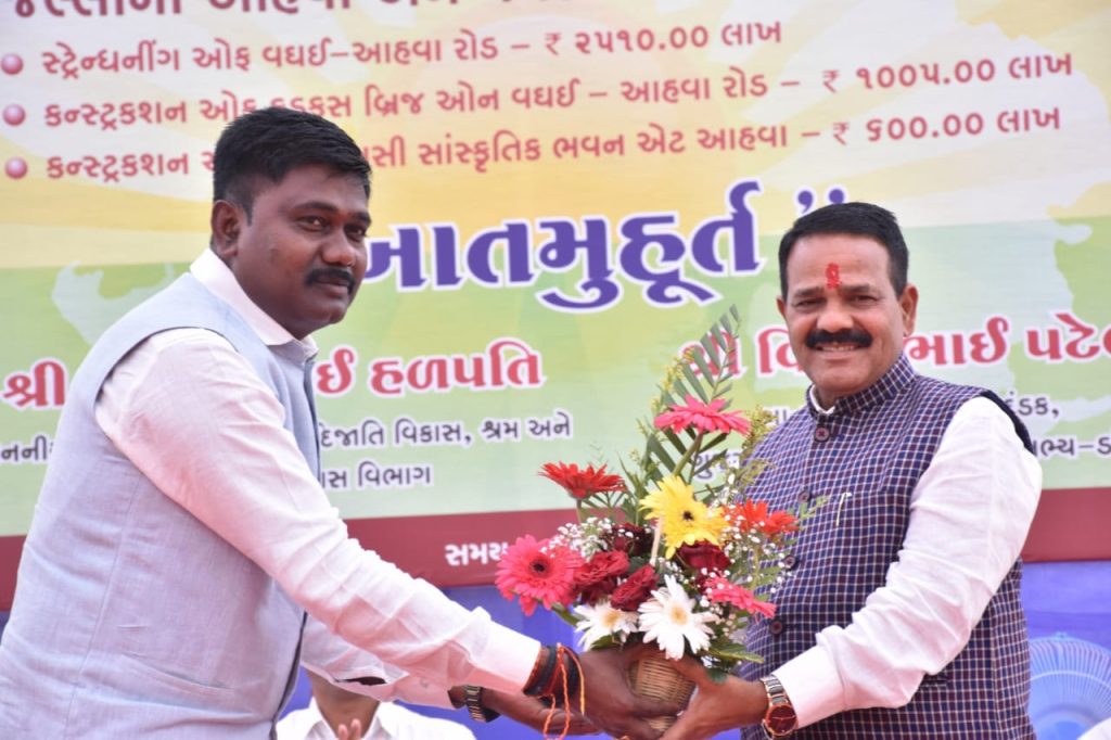 રાજ્યના આદિજાતિ વિકાસ, શ્રમ અને રોજગાર, ગ્રામ વિકાસ વિભાગ રાજ્ય મંત્રી શ્રી કુંવરજીભાઈ હળપતિ, તેમજ ગુજરાત વિધાનસભા નાયબ દંડક શ્રી વિજયભાઈ પટેલના અધ્યક્ષ સ્થાને ડાંગ જિલ્લાના આહવા અને વઘઈ ખાતે નિર્માણ થનાર વિવિધ વિકાસ પ્રકલ્પના “ખાતમુર્હત” કાર્યક્રમ વઘઈ સરકારી ખેતીવાડી શાળા ખાતે યોજાઇ ગયો.