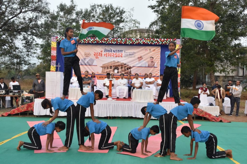 સૂર્ય નમસ્કારને વિશ્વસ્તરીય ફલક પર લઈ જવા માટે ગુજરાત રાજ્ય યોગ બોર્ડ અને રમત ગમત, યુવા અને સાંસ્કૃતિક પ્રવૃત્તિઓના વિભાગ, રાજ્ય સરકારના માર્ગદર્શન હેઠળ સમગ્ર રાજ્યમાં સૂર્ય નમસ્કાર મહા અભિયાન કાર્યક્રમનું આયોજન કરવામાં આવ્યું છે. આજે નૂતનવર્ષના પ્રથમ દિવસે તા.૦૧ જાન્યુઆરીના રોજ રાજ્યભરમાં ૧૦૮ સ્થળોએ સૂર્ય નમસ્કાર કાર્યક્રમોનું આયોજન કરવામાં આવ્યું હતું.