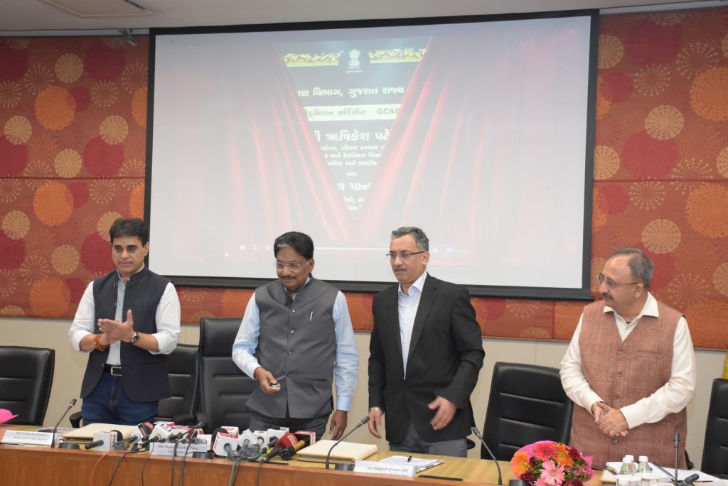 ગાંધીનગર ખાતે યોજાયેલ GCAS પૉર્ટલ લોન્ચિંગ પ્રંસગે, ઉચ્ચ અને ટેકનીકલ શિક્ષણ વિભાગના અગ્ર સચિવ મુકેશકુમાર, ટેકનીકલ શિક્ષણ વિભાગના કમિશ્નર શ્રી બંછા નીઘી પાની, હાયર એજ્યુકેશન વિભાગના ડાયરેક્ટર શ્રી પરિમલ પંડ્યા, રાજ્યની વિવિઘ યુનિવર્સિટીના વાઇસ ચાન્સેલર, રજીસ્ટ્રાર શ્રીઓ ઉપસ્થિત રહ્યા હતા.