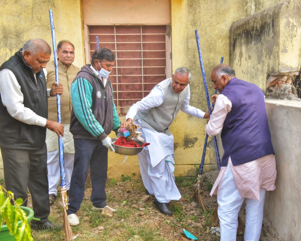 રાજ્યપાલ શ્રી આચાર્ય દેવવ્રતજી, મહેસાણાના સાસંદ શ્રી શારદાબેન પટેલ, માણસા વિધાનસભા ધારાસભ્ય શ્રી જે એસ પટેલ અને આગેવાનોએ પુંધરામાં મંદિર પરિસરમાં સફાઈ કરી