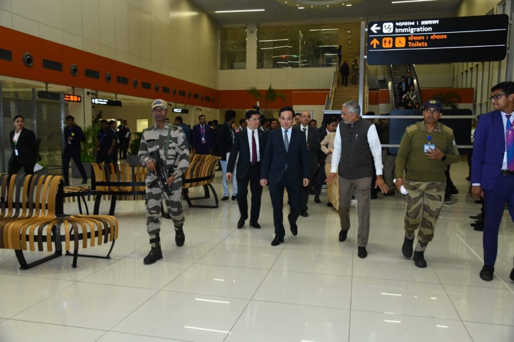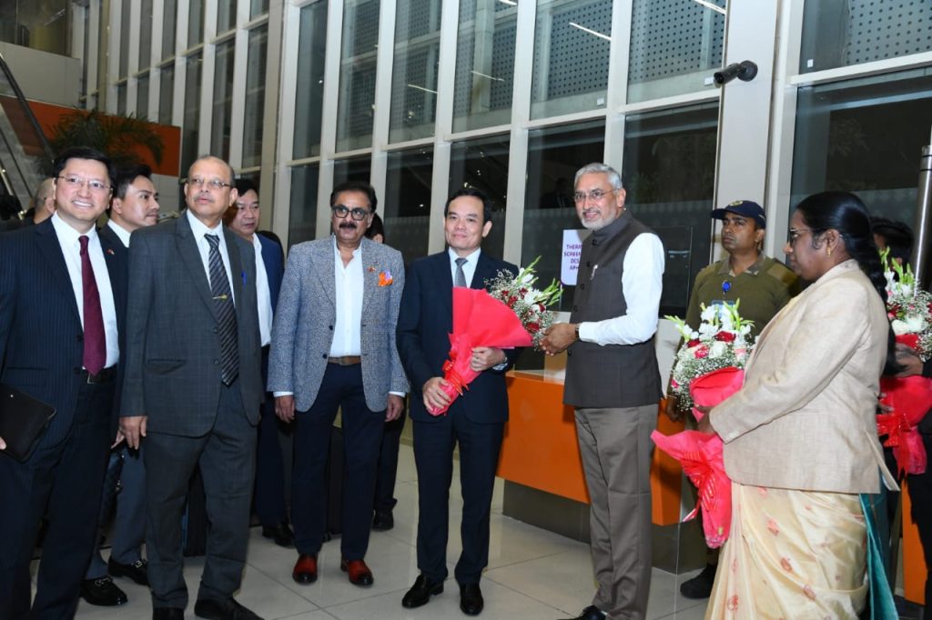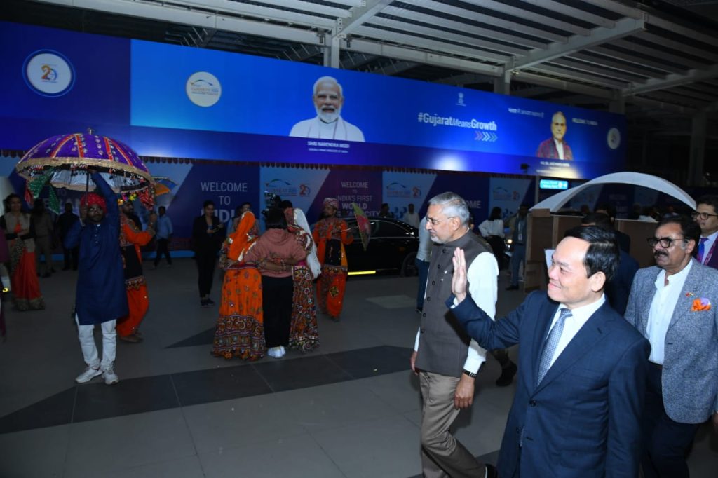 વાઈબ્રન્ટ ગુજરાત ગ્લોબલ સમિટ 2024માં ભાગ લેવા ગુજરાત પધારેલા વિયેતનામના ડેપ્યુટી પ્રાઈમ મિનિસ્ટર ટ્રાન લુ ક્વેંગનું અમદાવાદ એરપોર્ટ પર ઉષ્માસભર સ્વાગત કરવામાં આવ્યું હતું. આ તકે પ્રોટોકોલ મંત્રી શ્રી જગદીશભાઈ વિશ્વકર્મા, રાજ્યના ચીફ પ્રોટોકોલ ઓફિસર શ્રી જ્વલંત ત્રિવેદી, અમદાવાદ જિલ્લા કલેકટર સુશ્રી પ્રવીણા ડી.કે. સહિતના મહાનુભાવોએ વિયેતનામના ડેપ્યુટી પ્રાઈમ મિનિસ્ટરને આવકાર્યા હતા. આ પ્રસંગે વિવિધ સાંસ્કૃતિક જૂથો દ્વારા ગુજરાતની સાંસ્કૃતિક ઝાંખી રજૂ કરીને વિયેતનામના ડેપ્યુટી પ્રાઈમ મિનિસ્ટરને આવકારવામાં આવ્યા હતા.