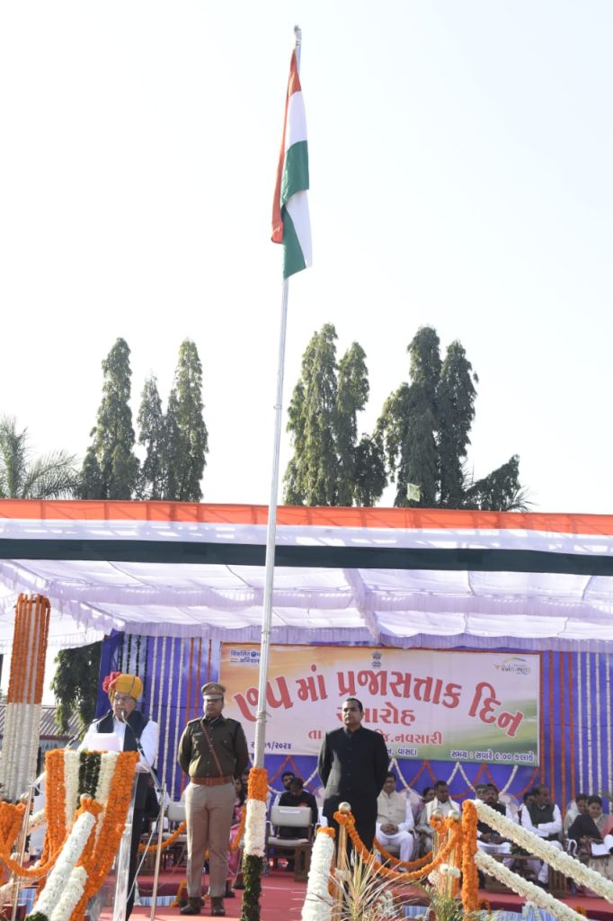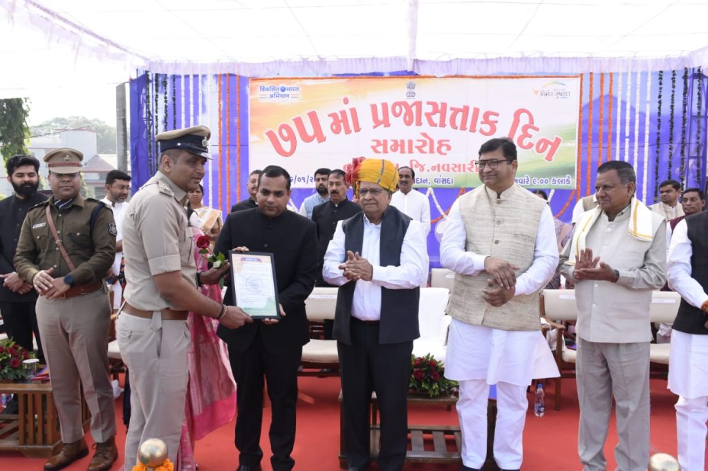 નવસારી જિલ્લા કક્ષાના ૭૫ મા પ્રજાસત્તાક પર્વની ઉજવણી રાજ્યના નાણા મંત્રીશ્રી કનુભાઈ દેસાઈની ઉપસ્થિતિમાં વાંસદા તાલુકાના ગાંધીમેદાન ખાતે કરવામાં આવી હતી.