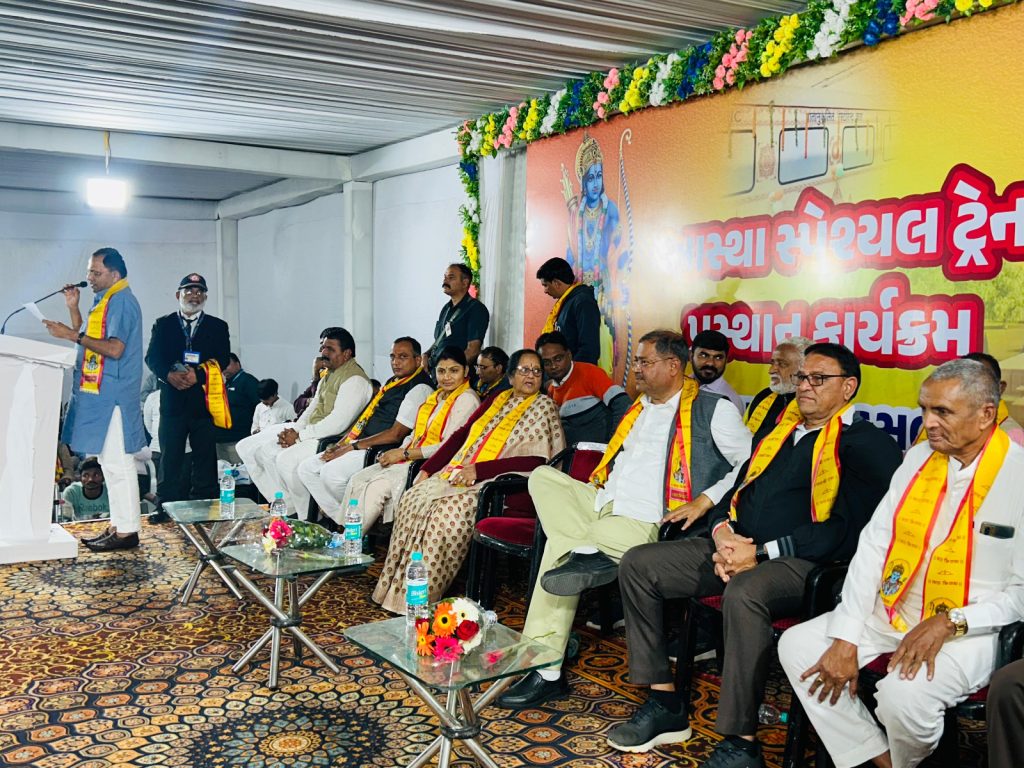 મહેસાણા જિલ્લાના રામભક્તોએ રામ ભગવાન ના દર્શનાર્થે મહેસાણા થી ઉપડી અયોઘ્યા જવા માટે આયોજન કરેલ.આ પ્રસંગે સુરતના ધારાસભ્યને મંત્રી મુકેશભાઈ પટેલ, મહેસાણા જિલ્લા પ્રમુખ ગીરીશભાઈ રાજગોર, મહેસાણા ધારાસભ્ય મુકેશભાઈ પટેલ, પ્રદેશ ભાજપ ઉપપ્રમુખ એમ એસ પટેલ, ઊંઝા ના ધારાસભ્ય કે કે પટેલ, બહુચરાજીના ધારાસભ્ય સુખાજી ઠાકોર, કડીના ધારાસભ્ય કરસનભાઈ સોલંકી, મહેસાણા જિલ્લા પંચાયતના પ્રમુખ તૃષાબેન પટેલ, મહામંત્રી શ્રી ઓ ભગાજી ઠાકોર, જે.એફ ચૌધરી, મહેશભાઈ પટેલ વગેરે હાજર રહી રામ ભક્તોને અયોધ્યા જવા રવાના કર્યા હતા.