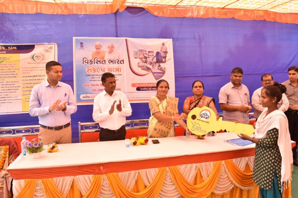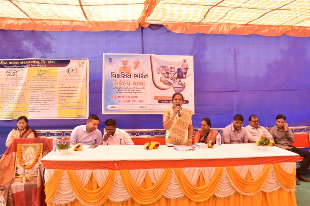 ભદરપાડા ગામે ડાંગ જિલ્લા પંચાયત પ્રમુખ શ્રીમતી નિર્મળાબેન ગાઈન, વઘઇ તાલુકા પંચાયતના પ્રમુખ શ્રી ચંદરભાઈ ગાવિત સહિતના પદાધિકારીઓ, અને સંકલ્પ યાત્રાના જિલ્લા કક્ષાના નોડલ ઓફિસર-વ-નાયબ જિલ્લા વિકાસ અધિકારી શ્રી હિરલ પટેલ સહિતના અધિકારીઓએ ‘સંકલ્પ યાત્રા-૨’ નો પ્રારંભ કરાવ્યો હતો.