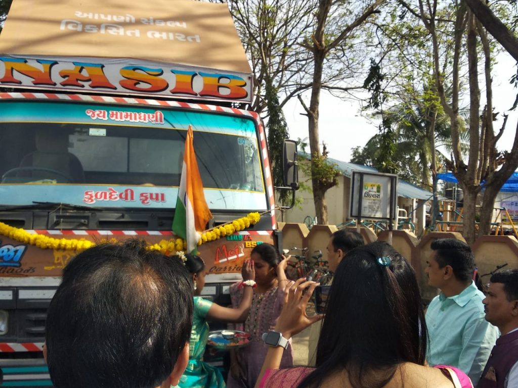 કેન્દ્ર અને રાજ્ય સરકારની ફ્લેગશીપ યોજનાઓના લાભો ગામે ગામ સુધી પહોંચે તેવા આશયથી સુરતના મહુવા તાલુકાના કાની ગામે વિકસિત ભારત સંકલ્પ યાત્રાનો રથ આવી પહોંચ્યો હતો.જ્યાં ગ્રામજનો દ્વારા સંકલ્પ યાત્રાના રથનું ભવ્ય સ્વાગત કરી વિકસિત ભારતની સામૂહિક પ્રતિજ્ઞા લીધી હતી.