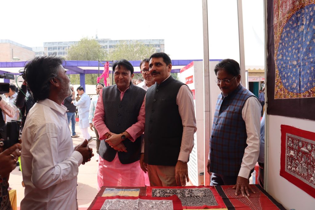 ગુજરાત વિધાનસભાનું ચોથું સત્ર ચાલી રહ્યું છે. ત્યારે અનેક લોકો વિધાનસભાની મુલાકાતે આવી રહ્યા છે. જેને ધ્યાનમાં લઈને હાથશાળ અને હસ્તકલા સાથે જોડાયેલા કારીગરોને પ્રોત્સાહન તથા રોજગારી આપવાના હેતુથી આ પ્રદર્શન સ્ટોલનું આયોજન કરવામાં આવ્યું છે. આ પ્રદર્શન સ્ટોલમાં રાજ્યની હસ્તકલાથી તૈયાર કરેલા પટોળા, બાંધણી, અજરખ, સુફ, મડવર્ક, ટાંગલીયા, કલમકારી, વારલી, અગેટ વગેરેના ઉત્પાદનોનું પ્રદર્શન અને વેચાણ થઇ રહ્યું છે.