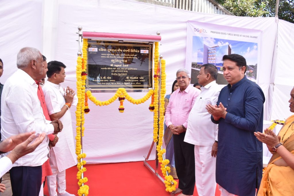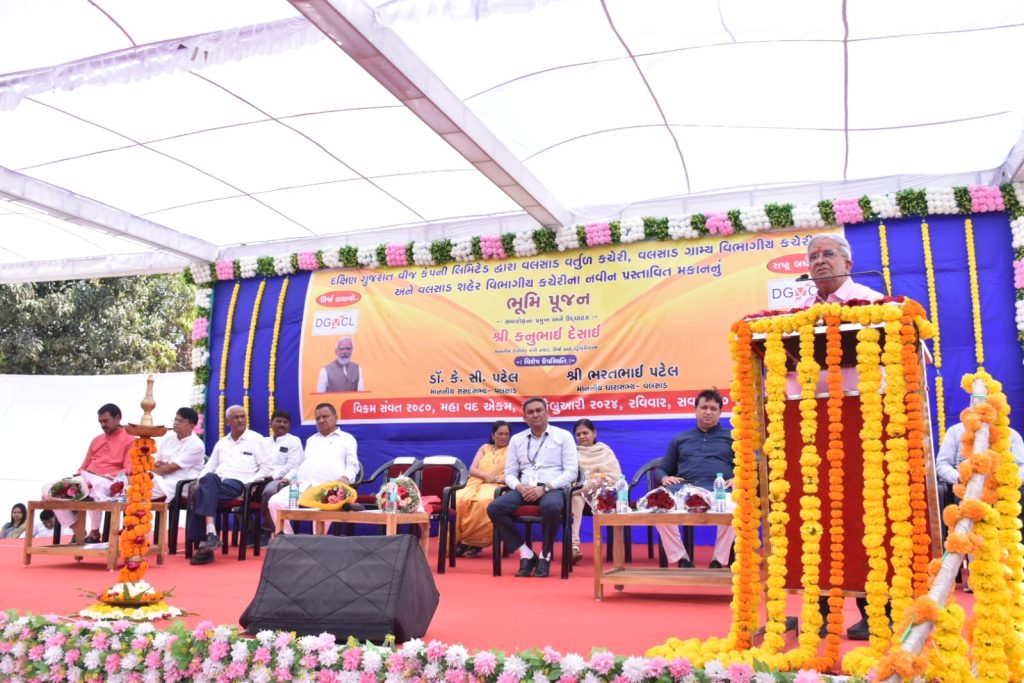 નાણાં, ઊર્જા અને પેટ્રોકેમિકલ્સ મંત્રીશ્રી કનુભાઈ દેસાઈના વરદ્ હસ્તે વલસાડ શહેરના દશેરા ટેકરી પાવર હાઉસ ખાતે રૂ. ૧૮ કરોડના ખર્ચે નવી બનનારી નવસારી અને ડાંગ જિલ્લાની દક્ષિણ ગુજરાત વીજ કંપનીની અદ્યતન સર્કલ કચેરીનું ખાતમુહૂર્ત કરવામાં આવ્યું