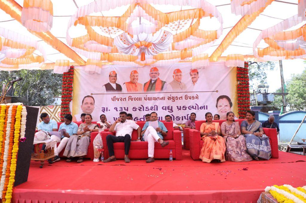 સુરતઃશનિવાર: ઓલપાડ તાલુકાના દિહેણ ગામેથી જિલ્લા પંચાયતની પીંજરત બેઠકમાં સમાવિષ્ટ કુલ રૂ.૧૩૫ કરોડના વિવિધ વિકાસ પ્રકલ્પોનું વન, પાણી પુરવઠા અને પર્યાવરણ રાજ્યમંત્રીશ્રી મુકેશભાઈ પટેલના હસ્તે ખાતમુહૂર્ત – લોકાર્પણ કરવામાં આવ્યું હતું.