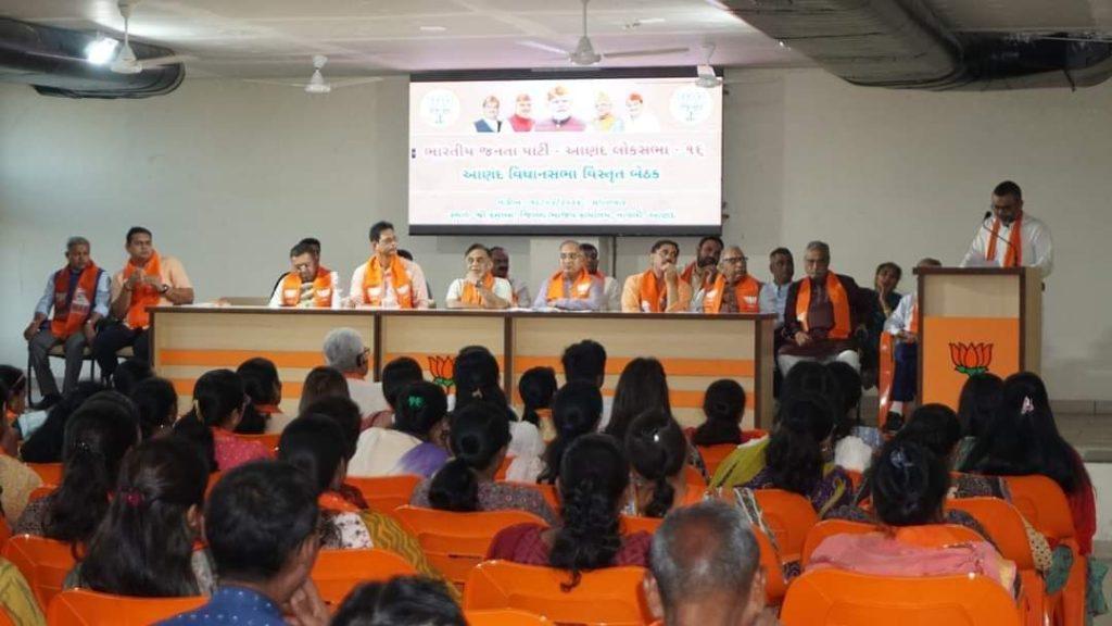 આણંદ જિલ્લા ભાજપ કાર્યાલય શ્રી કમલમ ખાતે આવનાર લોકસભા ચૂંટણી અંતર્ગત પ્રબંધક સમિતિની રચના અને વિશેષ કામગીરીની જવાબદારી માટે આણંદ વિધાનસભાની બેઠક યોજાઇ. આ બેઠકમાં જિલ્લા પ્રભારી શ્રી રાકેશભાઈ શાહ,જિલ્લા પ્રમુખશ્રી રાજેશભાઇ પટેલ,લોકસભા પ્રભારી શ્રી શબ્દશરણભાઈ બ્રહ્મભટ્ટ,લોકસભા સંયોજકશ્રી લાલસિંહભાઈ વડોદિયા, આણંદ લોકસભાના ઉમેદવાર અને સાંસદશ્રી મિતેષભાઈ પટેલ,જિલ્લા મહામંત્રીશ્રી જગતભાઈ પટેલ, શ્રી સુનિલભાઈ શાહ, ,શ્રી રણજીતસિંહ ચૌહાણ, વિધાનસભા પ્રભારીશ્રી વિમાલભાઈ ઉપાધ્યાય, ધારાસભ્યશ્રી યોગેશભાઈ પટેલ,આણંદ વિધાનસભા ના ગણમાન્ય પદાધિકારીઓ અને કાર્યકર્તાઓ ઉપસ્થિત રહ્યા.