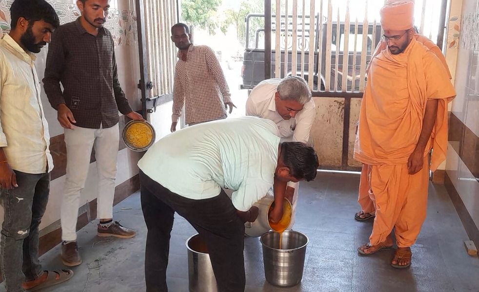 તારીખ 17 એપ્રિલ 2024 ચૈત્રસુદ નવમીના રોજ શ્રીમુક્તમુનિ મહોત્સવ એવં સદગુરૂ શતાબ્દી મહોત્સવ ઉપક્રમે ભગવાન શ્રીરામ એવં ભગવાન સ્વામિનારાયણના 243માં પ્રાગટ્ય દિને શ્રી સ્વામિનારાયણ મંદિર લોયાધામ દ્વારા પૂજ્ય પાદ ગુરૂવર્ય શાસ્ત્રી શ્રી ઘનશ્યામપ્રકાશદાસજી સ્વામીની પ્રેરણાથી ભગવાન સ્વામિનારાયણનો કેરીના રસનો દિવ્યઅભિષેક થયો . અભિષેક થયેલ પ્રસાદ ભૂત કેરીના રસને ઉનાળાની કાળજાળ ગરમીમાં શિતલતા માટે દરિદ્રનારાયણની સેવાના રૂપે ( વિતરણ કરવામાં આવ્યા હતો. કોઠારીશ્રી પૂજ્ય સર્જુવલ્લભસ્વામી તથા પૂજય અદભૂતવલ્લભસ્વામીના માર્ગદર્શન હેઠળ શ્રીલોયાધામના સંતો રાણપુર પાસે આવેલ ચુડા ગામ તથા બોટાદ ગામના વિસ્તારોમાં વસતા ગરીબ પરિવાર તથા અનાથ પરિવારના ઘરે ઘરે જઈને તથા ફુટપાથ રહેલા ગરીબોને તથા માનવ મંદ બુધ્ધિ આશ્રમ સમઢીયાળા કેરીનો રસ પીવડાવીને “જનસેવા એ જ પ્રભુસેવા “નું સૂત્ર સાકાર કર્યું હતુ. આજે કનુભાઈ ખાચર (બાબરકોટ) તથા લોયાધામના હરિભકતોની ટીમસેવાથી ગરીબોમાં કેરી ના રસનું વિતરણ સફળ બન્યુ હતુ. આવી દરિદ્ર નારાયણની સેવા કરીને શ્રીલોયાધામ મંદિરે આજે એક આદર્શ માનવતાનું ઉદાહરણ પૂરુ પાડયું છે.