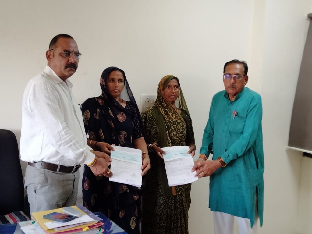 મોડાસા ખાતે જિલ્લા હોમગાર્ડની કચેરીએ ટીટોઈ હોમગાર્ડઝ યુનિટના બે પુરુષ્ક સભ્યોના વારસદરોને ૧.૫૫ લેખે રૂ.૩.૧૦ લાખના બે ચેક ચેક અર્પણ કરવામાં આવ્યા હતા. જેમાં ટીટોઈ હોમગાર્ડઝ યુનિટના સભ્ય સ્વ ઉપેન્દ્ર કેશાભાઈ પટેલના વિધવા પત્ની સુમિત્રાબેન પટેલને ૧.૫૫ લાખ અને સ્વ ધુળાજી વીરાજી તરારના વિધવા પત્ની ભીખીબેન તરારને ૧.૫૫ લાખ મળી કુલ મળી બન્નેને બે જુદા જુદા રૂ ૩.૧૦ લાખના ચેકોનું વિતરણ કરાયું હતું. મોડાસા ખાતે અરવલ્લી જિલ્લા હોમગાર્ડ કચેરીએ જિલ્લા સહકારી સંઘના અધ્યક્ષ પ્રભુદાસભાઈ પટેલ અને જિલ્લા હોમગાર્ડ કમાન્ડન્ટ દિનેશભાઈ ડી.પટેલના હસ્તે વિતરણ કરવામાં આવ્યું હતું. આ પ્રસંગે જિલ્લા હોમગાર્ડ કચેરીનો તમામ સ્ટાફની ઉપસ્થિતિ રહી હતી