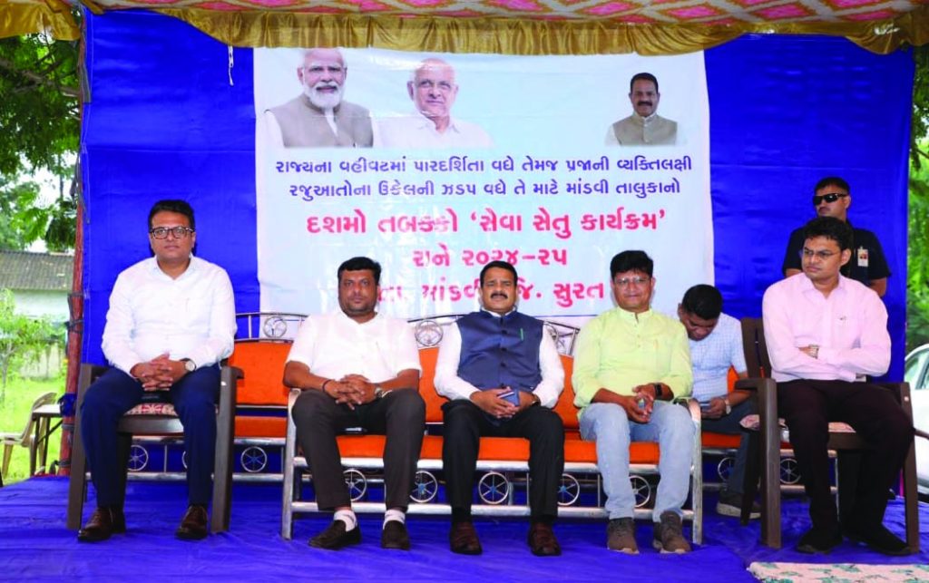 સુરત:શુક્રવાર: રાજ્ય સરકાર દ્વારા નાગરિકોને ૫૭ જેટલી વિવિધ પ્રકારની સરકારી સેવાઓ ઘરઆંગણે જ મળી રહે એ માટે માંડવી તાલુકાના ઉટેવા ગામ ખાતે આદિજાતિ રાજ્યમંત્રી કુંવરજીભાઈ હળપતિની અધ્યક્ષસ્થાને તાલુકા કક્ષાનો ‘સેવા સેતુ’ કાર્યક્રમ યોજાયો હતો. જેમાં માંડવી તાલુકાના ૩૯ ગામના ૮૩૮ લાભાર્થીઓએ વિવિધ યોજનાકીય લાભો સ્થળ પર જ મેળવ્યા હતાં.