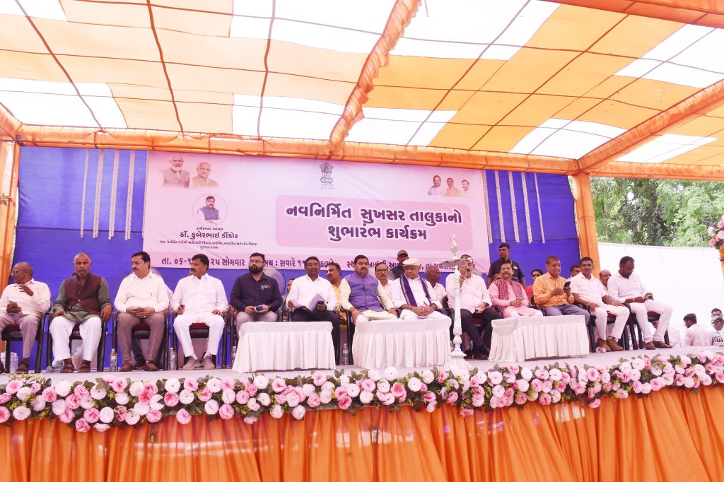 ગુજરાત સરકારના સેવા અને સુશાસનના ઐતિહાસિક નિર્ણયના ભાગરૂપે દાહોદ જિલ્લાના નવીન સુખસર તાલુકામાં મામલતદાર કચેરી અને તાલુકા પંચાયત કચેરીનો શુભારંભ આદિજાતિ વિકાસ, પ્રાથમિક, માધ્યમિક અને પ્રોઢ શિક્ષણ મંત્રીશ્રી ડો. કુબેરભાઈ ડીંડોર અને સાંસદશ્રી જશવંતસિંહ ભાભોરના વરદ હસ્તે કરવામાં આવ્યો હતો.