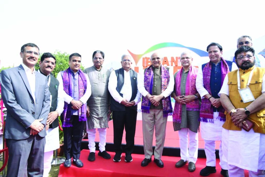 વાઇબ્રન્ટ ગુજરાત રિજનલ કોન્ફરન્સના ઉદ્ઘાટન સમારોહ પહેલા મુખ્યમંત્રી શ્રી ભૂપેન્દ્ર પટેલ તેમજ ભારત સરકારના રેલવે, સૂચના અને પ્રસારણ, ઇલેક્ટ્રોનિક્સ અને આઇટી મંત્રી શ્રી અશ્વિની વૈષ્ણવના હસ્તે મહેસાણામાં આયોજિત VGRCમાં ટ્રેડ શૉ અને એક્ઝિબિશન ઉદ્ઘાટન કરવામાં આવ્યું હતું.