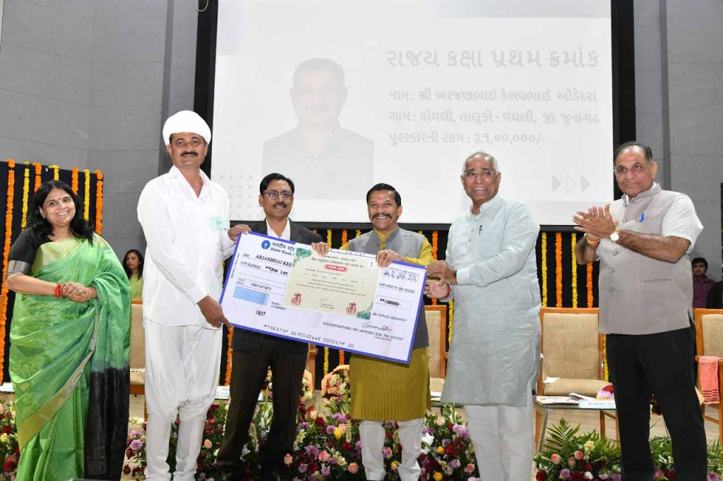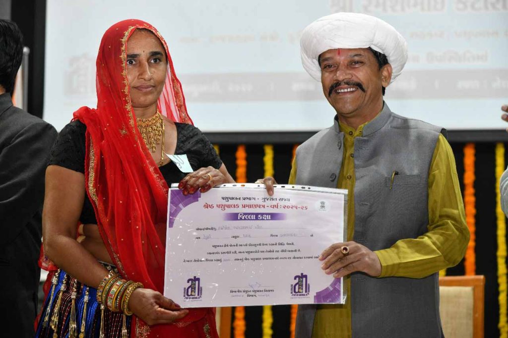 ગાંધીનગર ખાતે પશુપાલન રાજ્ય મંત્રી શ્રી રમેશભાઈ કટારાની અધ્યક્ષતામાં “શ્રેષ્ઠ પશુપાલક પુરસ્કાર વિતરણ સમારોહ ૨૦૨૫-૨૬” યોજાયો હતો. આ સમારોહ દરમિયાન શ્રેષ્ઠ પશુપાલક પુરસ્કાર યોજના હેઠળ રાજ્ય કક્ષાએ પ્રથમ ક્રમ મેળવનાર જૂનાગઢના પશુપાલક શ્રી અરજણભાઈ ઓડેદરા, દ્વિતીય ક્રમે સુરતના પશુપાલક શ્રી ખંડુભાઈ પટેલ તથા તૃતીય ક્રમે મોરબીના પશુપાલક શ્રી પ્રવિણભાઈ પટેલને પશુપાલન રાજ્ય મંત્રીશ્રીના હસ્તે સન્માનિત કરવામાં આવ્યા હતા. તેઓને ક્રમશ: રૂ. ૧,૦૦,૦૦૦, રૂ. ૫૧,૦૦૦ અને રૂ. ૩૧,૦૦૦ની પ્રોત્સાહક રાશિના ચેક અર્પણ કરવામાં આવ્યા હતા.